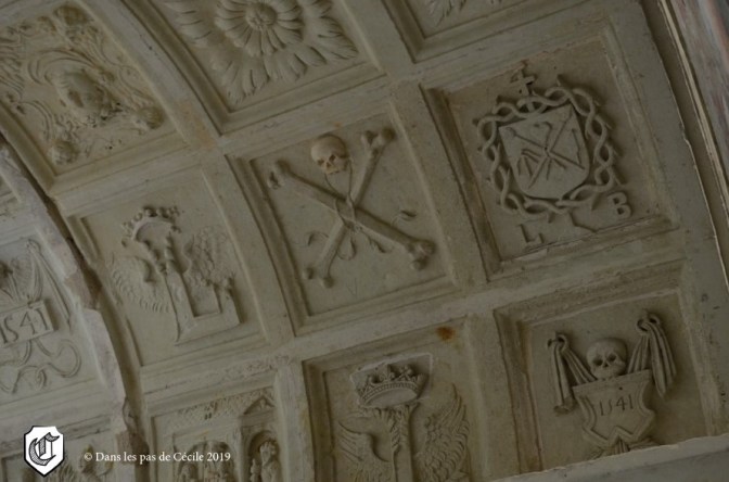 La salle capitulaire a intrigué Elicec de par son sol pavé aux armes royales, ses fresques religieuses sur les murs mais surtout une omniprésence de la mort sculptée à divers endroits de la salle…