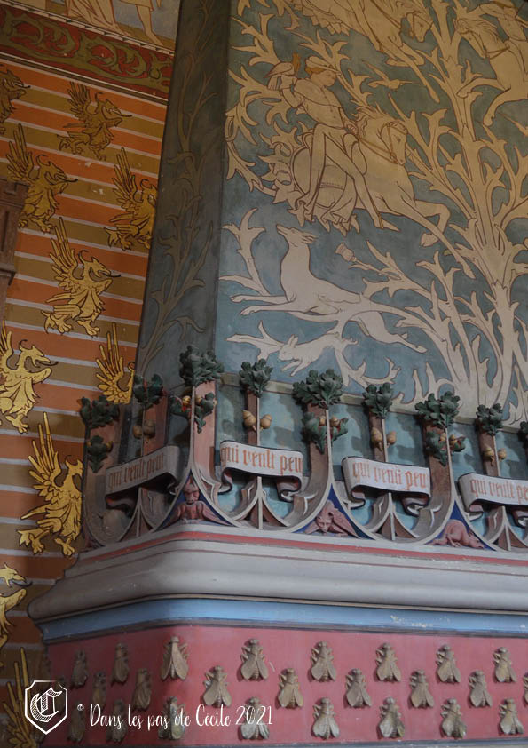 Les espaces sont tous plus impressionnants les uns que les autres ! et que dire de la salle des Preuses ! Salle où le seigneur rendait la justice, et décorée par la collection d’armure, les blasons, les motifs et les sculptures. C’est sûrement la salle la plus imposante du château avec ses 52 mètres de long.