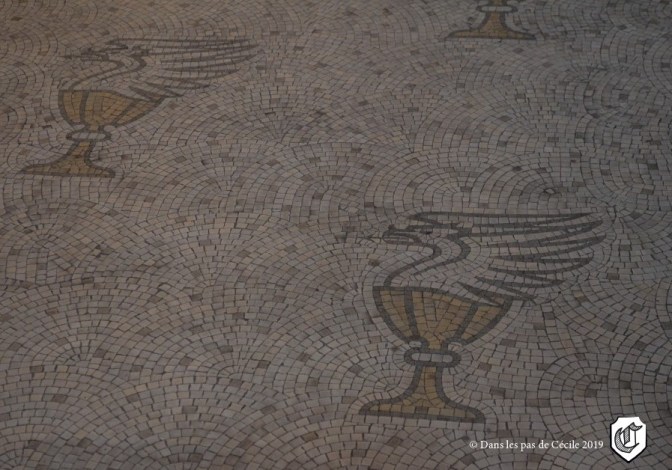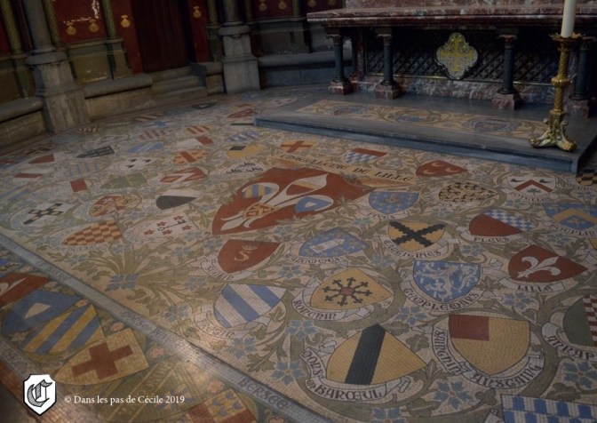 Mais c’est surtout cette mosaïque au sol qui a attiré l’attention d’Elicec : elle représente les blasons de toutes les paroisses qui ont composé la châtellenie de Lille.
