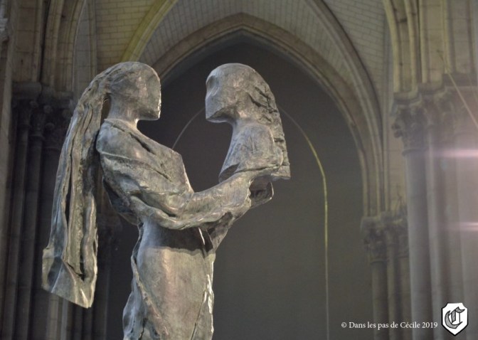 La visite se termine par lé découverte de sculptures contemporaines qui sont exposées dans les différentes parties de la cathédrale. Voici celle qui a le plus plu à Elicec et à sa guide.