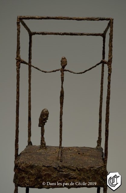 La notion de cage est aussi omniprésente dans l’œuvre de Giacometti, une salle est entièrement dédiée aux œuvres faisant référence à l’enfermement dû à la cage elle-même mais aussi à une sensation de liberté représentée avec ses espaces vides.