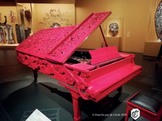 Voici l’un des coups de cœur d’Elicec pour cette section qui est une œuvre contemporaine : un piano décoré. Celui-ci est décoré de motifs typiquement maori, rappelant celui utilisé pour les pirogues (waka), ou les maisons de réunion (wharenui).