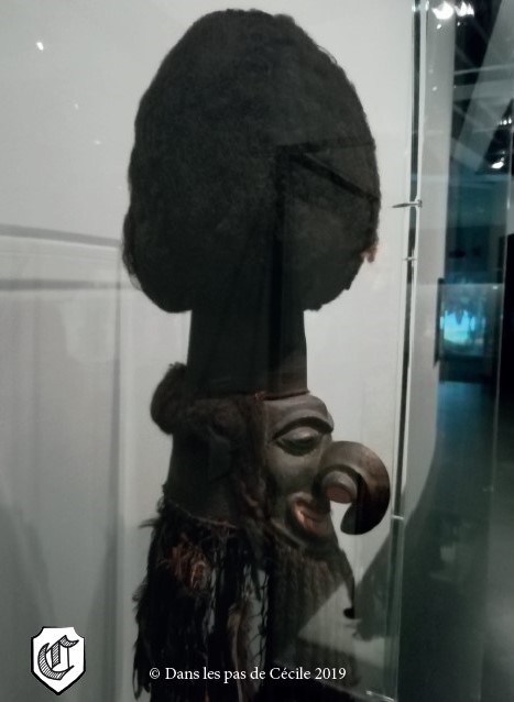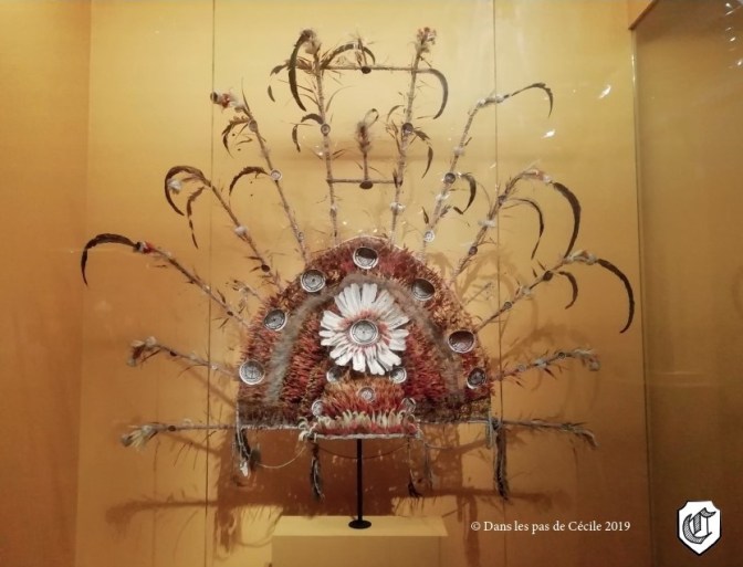 Le deuxième coup de cœur de la section sont les différents masques et coiffes qui sont présentés. Le premier masque est un masque « aiaimunu ». Il représente un esprit venant le temps d’une danse s’incarner dans le corps d’un danseur. Ils sont portés par les hommes. Pendant une période, ils ont été mis de côté mais sont à nouveau utilisés aujourd’hui.