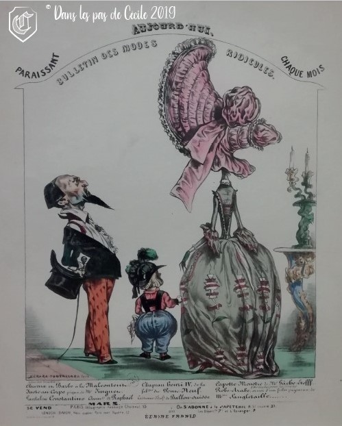Ces représentations mettent en avant les modes et accessoires durant la période romantique, qui parfois offre des formes incongrues comme les manches « gigots », la coiffure « à la girafe » ou encore la jupe ultra courte pour l’époque ! Les hommes ne sont pas en reste avec leurs corps emprisonnés dans un corset, le cou serré dans par une cravate-carcan. Tout le monde passe sous la plume des dessinateurs de l’époque !