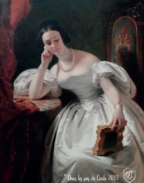 Pour terminer, voici un tableau, peint par Claude-Marie Dubufe qui a attiré l’œil de la guide-conférencière d’Elicec par le jeu de lumière et surtout le rendu du tissu de la robe d’une blancheur éclatante !