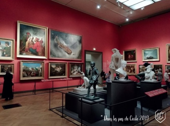 Et voici la deuxième exposition traitant du courant romantique, mais cette-ci uniquement dans une ville : Paris ! Une très belle scénographie a été mise en place pour cette présentation quasi touristique de la ville parisienne, parce qu’elle met en avant les quartiers les uns après les autres, avec des thématiques vraiment intéressantes, en faisant également un mélange d’œuvres : peintures, sculptures, mode, mobilier …