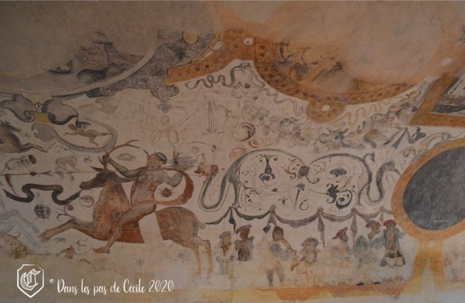 Si l’extérieur de la cour nous a réservé ces belles fresques, direction l’intérieur qui nous laisse tout aussi émerveillés par les décors présents sur les murs ainsi que les plafonds peints.