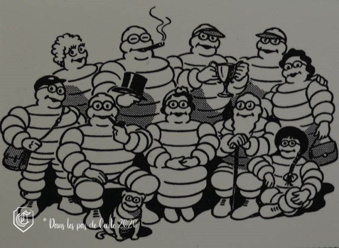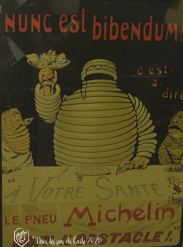 Mais au fait d’où vient le fameux bonhomme Michelin ? La naissance de Bibendum est une suite d’anecdotes et de réflexion. Tout commence lors de l’Exposition universelle, internationale et coloniale de Lyon en 1894, où les frères Michelin aperçoivent une pile de pneumatiques. Édouard aurait dit à son frère : « Regarde, avec des bras, cela ferait un bonhomme ! ». Mais il faudra encore attendre quelques années avant que Bibendum fasse son apparition. Attendre que le dessinateur O’Galop montre aux frères Michelin un projet d’affiches publicitaires. Et c’est une affiche en particulier qui retient leurs attention, affiche qui a été refusé par une brasserie. On y voit Gambrinus (les amateurs de bière le reconnaîtront !) brandissant une chope de bière en déclarant « Nunc est bibendum ! » autrement dit « C’est maintenant qu’il faut boire ! ». Cela rappelle fortement le slogan qui a été celui de Michelin lors d’une course cycliste : « le pneu Michelin boit l’obstacle » 😊