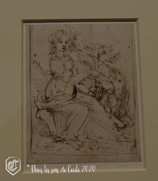Voici ensuite, des photographies représentant plusieurs études : une madone au chat, de profils humains, une femme en compagnie d’une licorne, saint Sébastien…