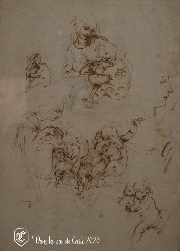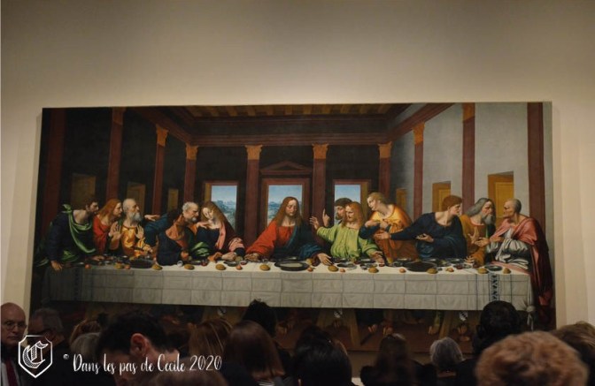 Et bien sûr, nous ne pouvons pas évoquer Léonard de Vinci sans évoquer ses œuvres connues à travers le monde, dont voici certaines photographies : la Sainte-Anne (qui a été restaurée pour être visible lors l’exposition d’ouverture du Louvre-Lens en décembre 2012 ! La guide d’Elicec avait déjà été subjuguée par la couleur bleue à l’époque et cela ne change pas 😉), le Saint Jean-Baptiste qui revêt une aura de mystère; le Salvador Mundi et enfin La Cène (qui a une place de choix dans l’exposition)