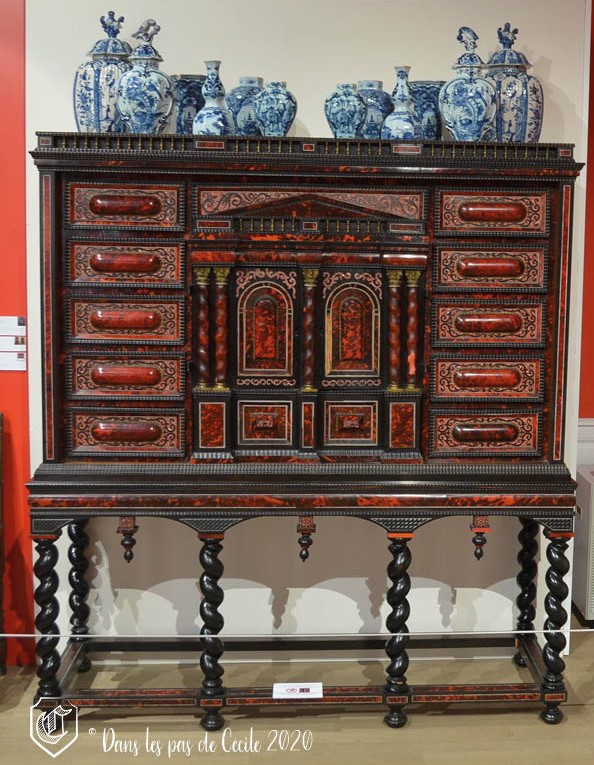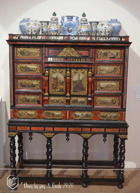 Le premier espace reprend la collection des beaux-arts et de mobilier : pas moins de 232 peintures et 352 pièces de mobilier qui ont été acheté par notre collectionneur. Dans la pièce sont réunis les tableaux et les meubles qui sont le mieux conservés et qui ont un intérêt. Les deux cabinets flamands sont juste splendides !
