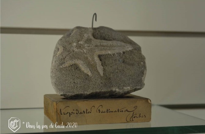 Mais Elicec et sa guide ont surtout été attiré par le fossile d’étoile de mer ! Rare car l’espèce n’a pas de squelette mais un corps mou, doué de la capacité de régénération. Eh oui, quand un de ses bras (l’étoile en a minimum 5 mais elle peut en avoir jusqu’à 50 !) est coupé, il repousse ! Cela rappelle aussi des souvenirs d’enfance quand elle récupérait des étoiles de mer sur la plage avec son frère.