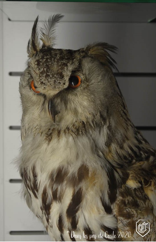 Cette collection d’oiseau est intéressante au niveau nationale, car si l’on enlève Paris, il s’agit de la 10e collection en terme d’importance et nombre de spécimens, car il y 20 000 oiseaux naturalisés dans les collections. Le choix a été de les présenter en fonction de leur géographie : les oiseaux locaux que l’on peut retrouver notamment dans les espaces naturels du marais audomarois, et de l’autre les oiseaux exotiques. Le grand pingouin, espèce disparue, ayant quant à lui une vitrine à lui tout seul. Parmi les oiseaux locaux, Elicec a pu voir un hibou grand-duc, une chouette effraie, une chouette hulotte, un pic vert, un faucon pèlerin et crécerelle…