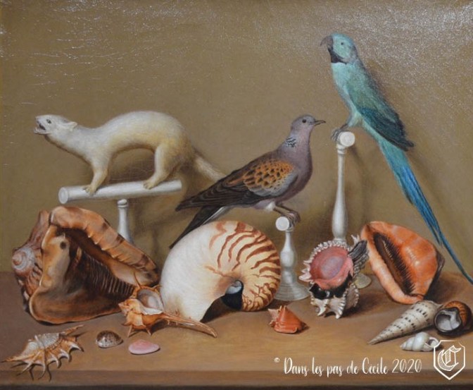Il s’inspire de la peinture flamande pour la représentation des cabinets de curiosités, tout en prenant des libertés car si ici, Henri Dupuis réalise une composition mettant en scène certaines pièces de sa collection (nautile, conus et autres coquillages, perroquet) ; la peinture flamande, quant à elle, représente toujours une vue d’ensemble du cabinet de curiosités, donnant au spectateur l’atmosphère d’une pièce saturée par les collections, comme ici chez Cornélis de Baellieur (œuvre exposée au Musée de Flandre lors d’un dépôt temporaire du Musée des Beaux-Arts de Dijon).