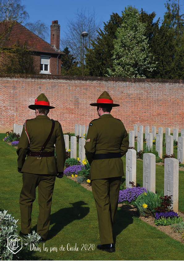 La guide d’Elicec était déjà venue sur ce site à l’occasion d’un événement particulier : les 100 ans de la bataille d’Arras (9 avril 1917), en 2017. L’occasion de commémorer le souvenir des soldats, en présence de l’armée britannique présente ce jour-là. Voici une des photos prises lors de cette commémoration, représentant deux soldats néo-zélandais, reconnaissables à leur « lemon squeezer », qui n’est autre que le surnom du chapeau (ressemble à un presse-citron).