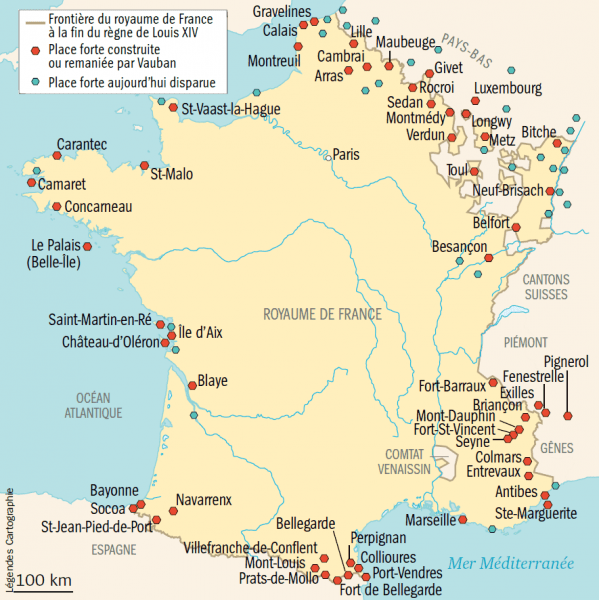 « L’enjeu essentiel de la guerre, sous Louis XIV devient territorial : comme le rappelle Vauban à Louvois dans une lettre de 1673, il s’agit de faire en sorte que le roi puisse gérer le territoire dans sa totalité depuis Versailles, ou, selon l’expression utilisée par Vauban, « tenir son fait des deux mains ».