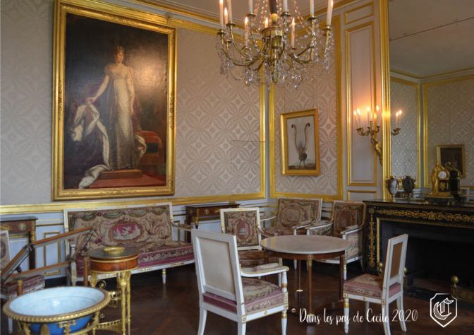 Ensuite, nous retrouvons des pièces en enfilade pour terminer la visite. Salles faisant référence à l’empire avec le grand salon de l’Impératrice. Avant la Révolution, il s’agissait du grand cabinet de la reine, utilisé ensuite comme salle de jeux et d’audience avant d’être redécoré par Marie-Antoinette dans le style néo-classique. Aujourd’hui, nous pouvons admirer la totalité du mobilier d’origine lorsqu’il a été réaménagé sous Napoléon Ier.