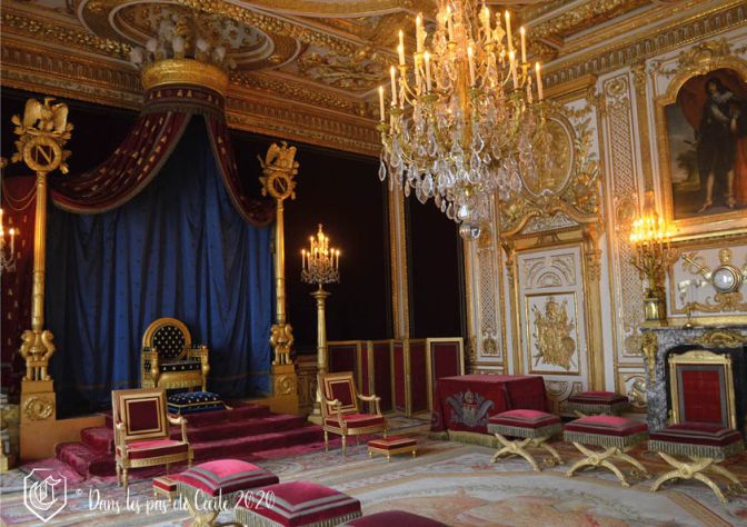 Pour ensuite arriver dans la salle du trône, qui auparavant n’était autre que la chambre du roi, tout un symbole ! On peut ainsi y voir le mobilier et notamment les petits fauteuils indiquant comment étaient reçu les invités pour rencontrer l’empereur.