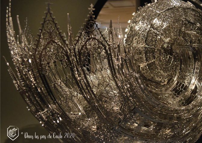 Terminons cet article avec le coup de cœur d’Elicec et de sa guide, une œuvre d’art contemporain : Nautilus Penta réalisé par Wim Delvoye. Un nautile entièrement réalisée en dentelle d’architecture. L’artiste réalise son œuvre sur plusieurs années, avec des croquis et beaucoup d’heures de travail sur un logiciel pour créer une œuvre inimitable. Véritable découverte et avouons-le, si un jour, ce nautile gothique vient à intégrer les collections du Musée de Flandre, se serait juste magnifique !