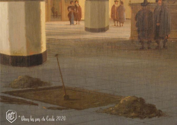 Tout comme les peintres flamands, les hollandais insèrent des scènes de la vie quotidienne et représentent aussi des intérieurs totalement imaginaires. Cela permettant de construire de toutes pièces des espaces pour piéger l’œil, pour que celui-ci aille d’espaces en espaces et d’être constamment surpris par les détails architecturaux représentés.