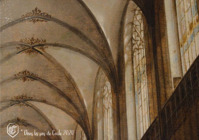 Ce qui est intéressant dans la thématique de l’architecture religieuse présentée dans les salles, c’est que nous entrons littéralement dans les édifices, les artistes, qu’ils soient flamands ou hollandais, construisent leurs œuvres pour les yeux.
