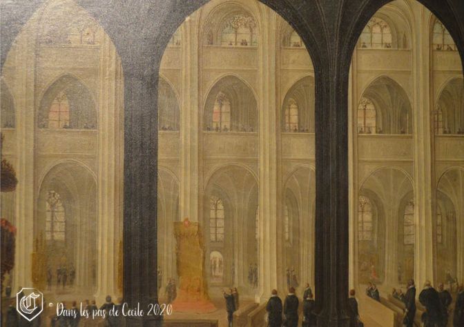 L’œuvre suivante permet notamment de voir le jubé, mais est-ce que vous savez en quoi consiste cet élément architectural ? Il s’agit d’une clôture permettant d’ « isoler » le chœur, espace sacré dédié aux religieux, de la nef qui elle, est à l’usage des fidèles. Ici, il y a une particularité, c’est que le chœur est surélevé !
