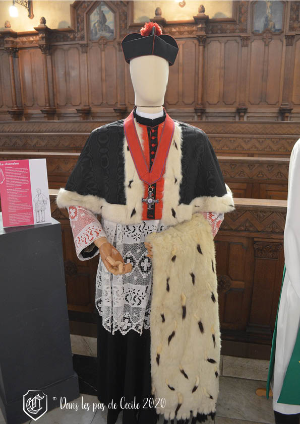 Vient ensuite le chanoine qui est reconnaissable notamment avec le port de l’hermine. Le chanoine est celui qui célèbre l’office divin au sein d’une cathédrale. Notons au passage que les chanoines du chapitre de la cathédrale d’Arras se distingue des autres chanoines. En effet, au lieu d’avoir une barrette entièrement noire, celle-ci arbore des liserés rouges ainsi qu’une houppe de la même couleur. Ils seront ainsi surnommés « les pompons rouges », le liseré rouge étant une référence à la Légion d’Honneur de Monseigneur Parisis.