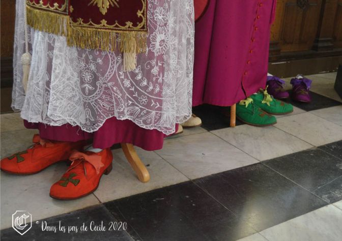 Le rôle de l’évêque au sein de l’Église est aussi d’administrer les sacrements directement ou par le biais des saintes huiles utilisés par les diacres et prêtres. L’évêque porte le violet ainsi que plusieurs attributs comme la crosse, la croix pectorale et l’anneau. Tous ces attributs sont là pour évoquer sa fonction de pasteur. En passant, remarquez que la couleur des chaussures est toujours associée au temps liturgiques qui ont été évoqué au début de cet article !