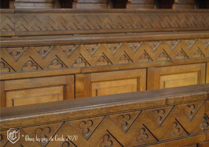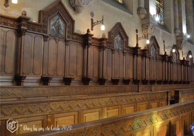 Après cette présentation, un très bel ensemble de la chapelle du collège Saint-Vaast de Béthune est présenté. Un ensemble des années 1930 aux couleurs chatoyantes et aux motifs Art Déco.