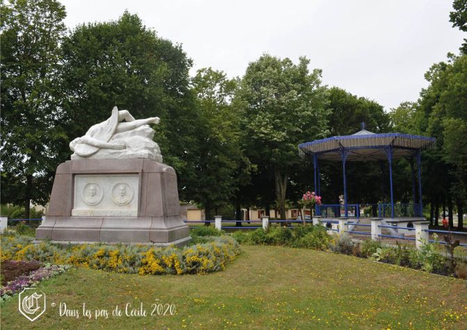Le premier élément sur la route est un monument dédié aux Frères Caudron. N’ayant pas eu le temps de visiter le musée dédié à ces frères à Rue, Elicec sait juste qu’ils ont été aviateurs et originaires de la Somme (une nouvelle raison de revenir à Rue et de visiter le musée!). Cette sculpture, qui a connu des déboires durant la Seconde Guerre mondiale (démontée et fondue par les Allemands), a été inauguré en 1923. Le monument est situé juste à l’entrée du jardin public, qui sera doté en 1932 d’un kiosque.