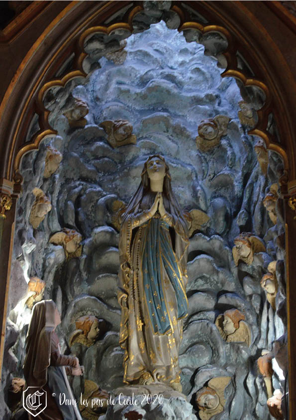 Elicec a eu un petit coup de cœur pour ces maquettes suspendues mais également pour la fresque, située dans l’autre nef, peinte par Albert Siffait de Montcourt. Il a pris quelques libertés concernant la représentation du château. Une inscription est également visible : « Que voici un bon peuple, plut à Dieu, que je fusse si heureuse. Lorsque je finirai mes jours, que je puisse être enterrée en ce pays ». Phrase attribuée à Jeanne d’Arc, car elle a été emprisonnée sur Le Crotoy.