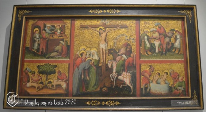 Et l’occasion de d’admirer un retable fermé, pour admirer une Annonciation dans le pur style des Primitifs flamands (pardon pour le vilain reflet)