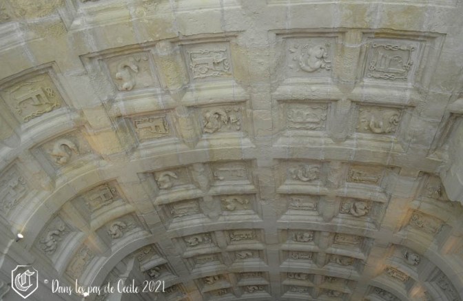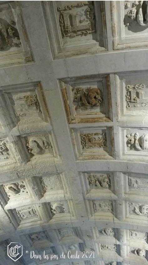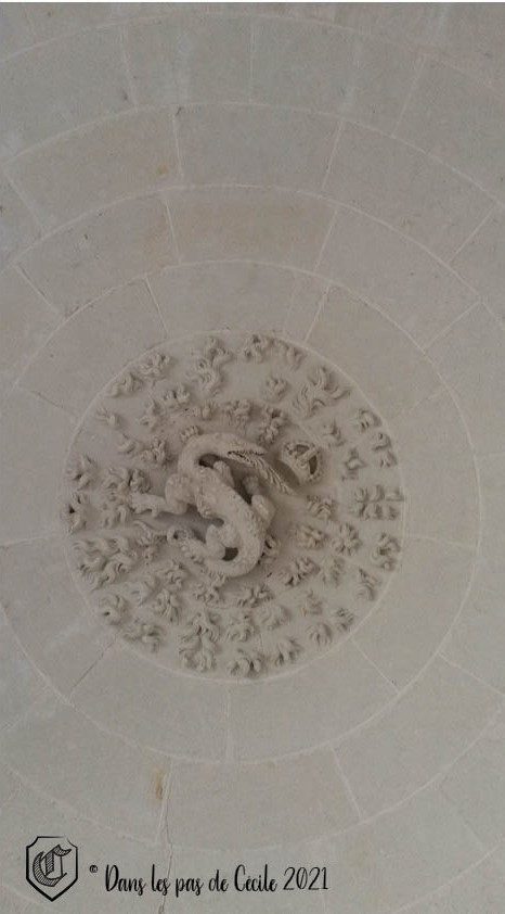 Le deuxième étage du donjon, et principalement les bras de croix entourant l’escalier est l’endroit préféré du château pour Elicec et sa guide. Ces voûtes avec 400 caissons sculptés de salamandres et la lettre « F » O_O