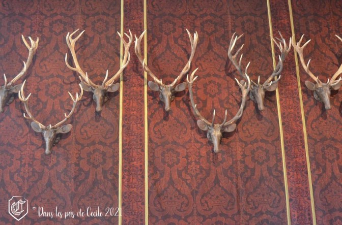 Le deuxième étage abrite également la galerie des Trophées qui se situe dans le couloir de l’aile gauche (au-dessus du couloir menant à la chapelle). Mais surtout ne pas prendre l’escalier en colimaçon qui se trouve au bout de la galerie, sinon le clou du spectacle n’aura pas été admiré : les terrasses et le point de vue du château, de ses jardins et du domaine à 360°