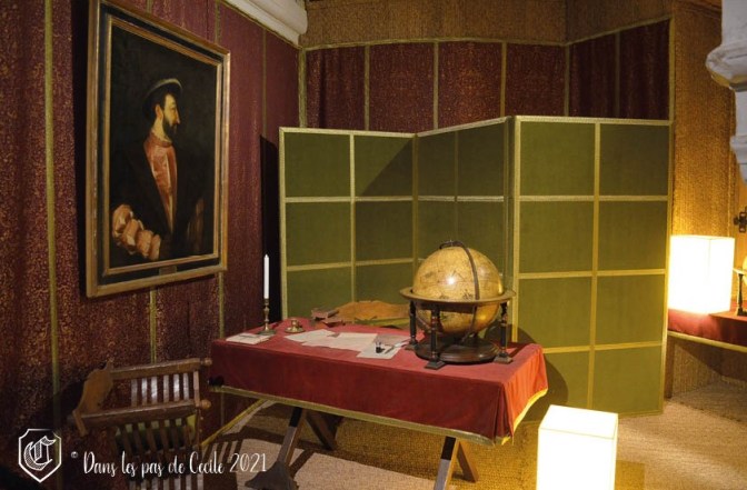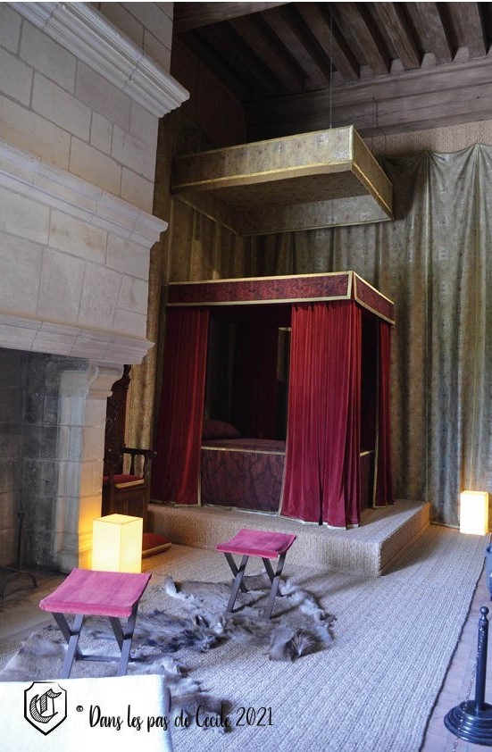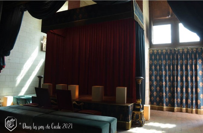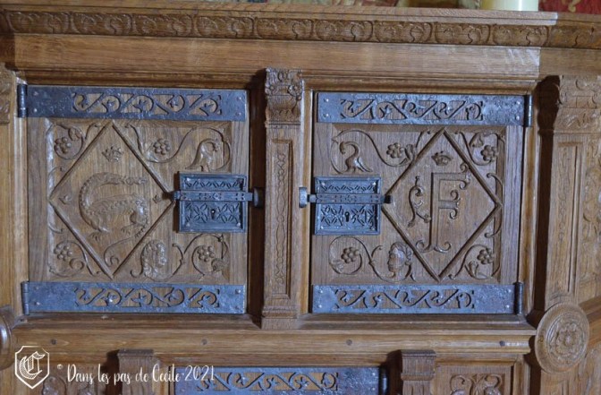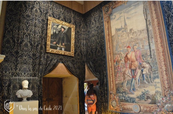 Pendant la visite du logis, les différentes pièces ont elles aussi été aménagées avec du mobilier pour donner une idée aux visiteurs de l’ambiance et de la fonction des différentes pièces traversées : salle du roi, le cabinet de travail, la chambre, la garde-robe et l’oratoire. Ce que la guide d’Elicec appréciait, lors des visites guidées, c’était d’ouvrir cette porte secrète dans la chambre, d’emprunter l’escalier et d’emmener les visiteurs dans les parties non ouvertes au public 😉