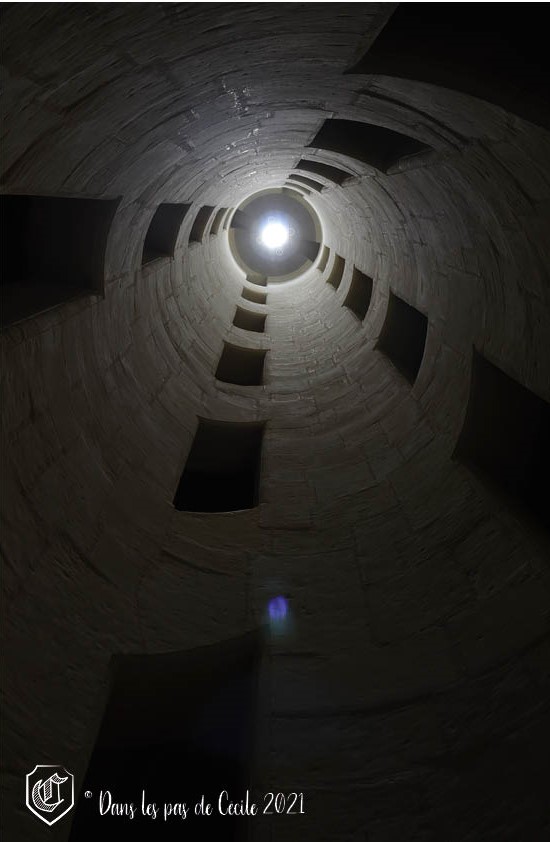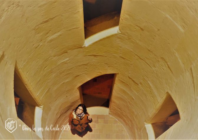 Ensuite, c’est le moment d’emprunter le fameux escalier à double révolution, si cela n’a pas encore été fait. Escalier qui serait inspiré de Léonard de Vinci, et qui est juste magnifique dans sa composition architecturale. Deux escaliers avec de points de départ différents qui s’enroulent autour d’un axe central commun, comme l’hélice d’ADN, encore les deux parfums d’une glace à l’italienne !