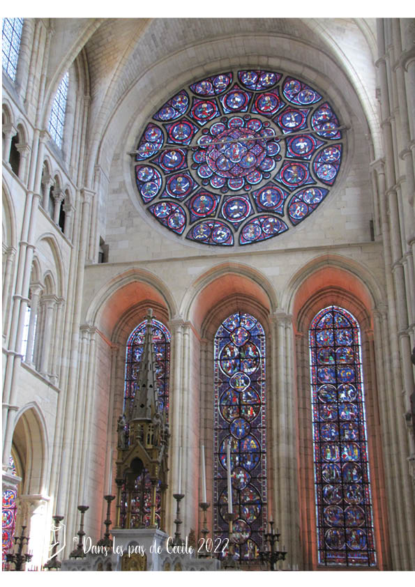 D’ailleurs en parlant de vitraux, le meilleur endroit pour les admirer dans leur globalité serait à la croisée du transept. Ceux composant le chevet (au fond du chœur plat) est un ensemble complet datant du 13e siècle. Ils vont être très abîmés lorsque la poudrière à proximité de la cathédrale explosera en 1870. Les morceaux et fragments des verrières sont recueillis et une restauration aura lieu à la fin du 20e siècle pour la rose et un des triplets.