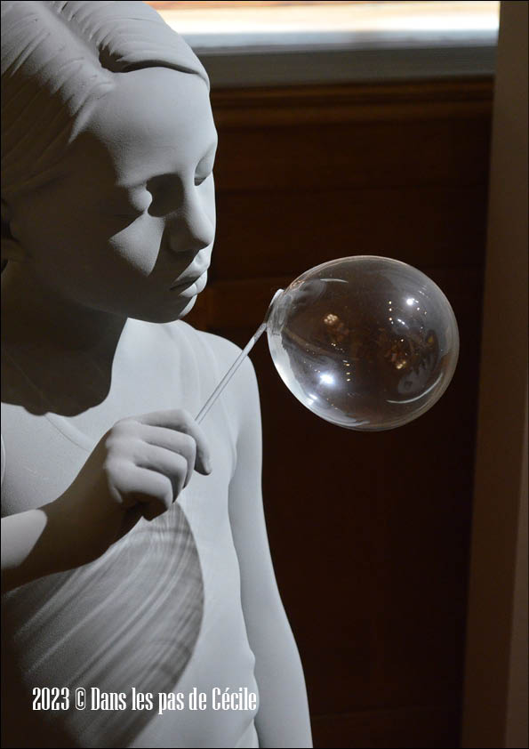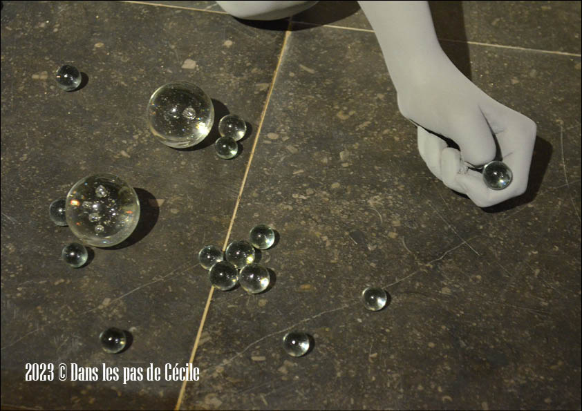 Les enfants qui sont représentés à travers Tatiana et Timo sont figés dans l’instant. Ils sont en train d’effectuer un geste comme souffler pour former une bulle de savon ou se préparer à lancer une bille. Ces sculptures sont saisissantes de réalisme, mais nous ne pouvons communiquer avec elles. Les enfants ont les yeux fermés, comme s’ils ne voulaient pas que nous entrions dans leurs univers, dans leurs pensées.