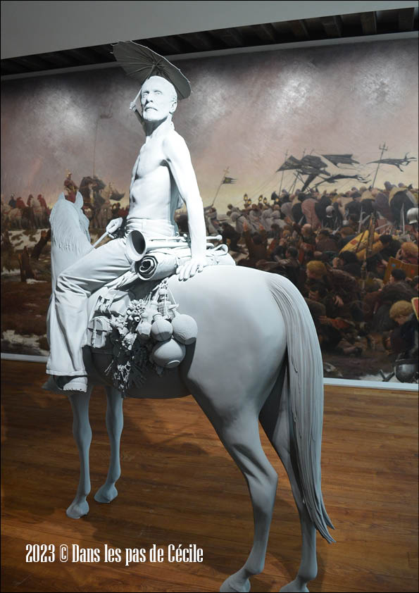 Le désordre ou du moins le bruit, le mouvement se poursuit dans la salle suivante consacrée au carnaval en ce qui concerne les œuvres des collections permanentes. Car dans un coin de la pièce, la danseuse d’Hans op de Beeck semble s’être posée un court instant, le temps de reprendre son souffle avant de repartir sur les pistes de danse 😊 ou alors le carnaval, les danses sont terminées et c’est l’instant suspendu : ça y est c’est fini, je vais pouvoir me détendre ! et d’un autre côté ça y est c’est fini, il va falloir passer à autre chose. Mais le résultat reste le même : c’est l’heure du repos… Sentiment libérateur et coupable d’une personne sortant de scène, parole d’ancienne danseuse ! 😉