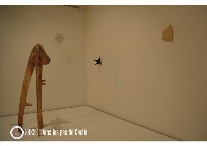 L’espace devient comme une forêt de sculptures, avec des formes et des matériaux qui se répondent, qui s’opposent dans un espace qui semble très naturel.