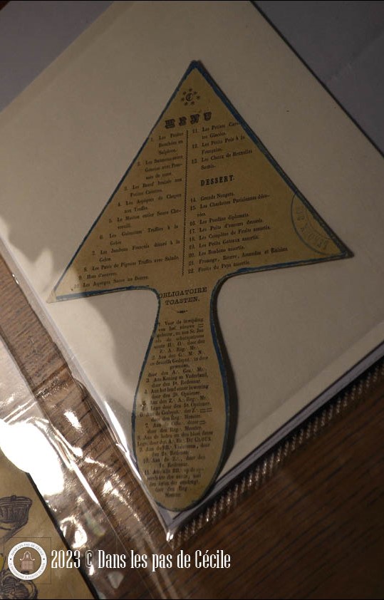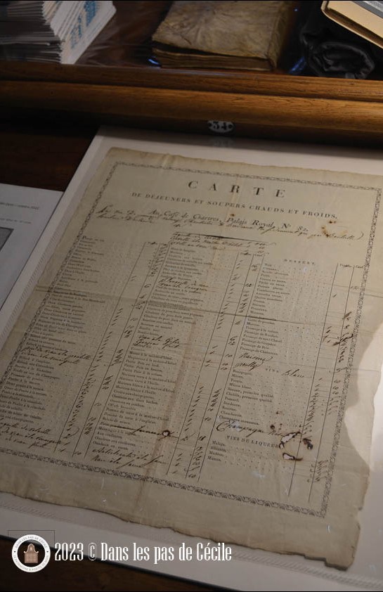 Le dernier document qui a été acquis en 2022, grâce à des subventions, est l’Art de découper la viande. Des cartes de restaurants ont aussi été acquises. La naissance du restaurant tel que nous le connaissons de nos jours date de 1760, avec l’apparition des cartes de restaurants. Ces cartes sont assez rares car de prime abord, nous les trouvons très simples et sans intérêt. Mais au final, ils deviennent des témoins de moments historiques : repas lors d’accueil diplomatiques comme les accords franco-russes, ou les repas avec les monarques tels que le souverain anglais. Il y a un même un menu du repas organisé par le Shah d’Iran pour les 2500 ans de l’Empire Perse.
