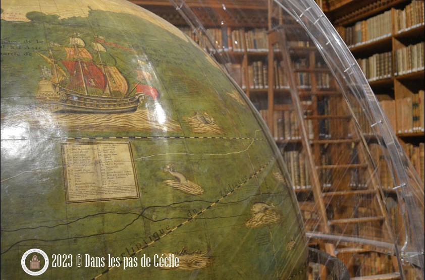 Le Globe a été confisqué pendant la Révolution française et il s’agit du plus gros globe en France après ceux de Coronelli, visibles à la BnF (Bibliothèque François Mitterrand à Paris), soit dit en passant, allez les admirer ils sont sublimes ! Contrairement à Paris, ici il n’y a que le globe terrestre, le globe céleste ayant disparu.