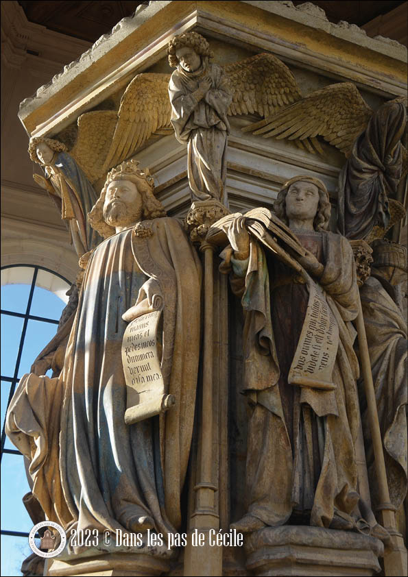 Nos prophètes sont surmontés par des anges qui sont assez expressifs dans leurs émotions. Je vous laisse découvrir certains détails de ces différentes sculptures.