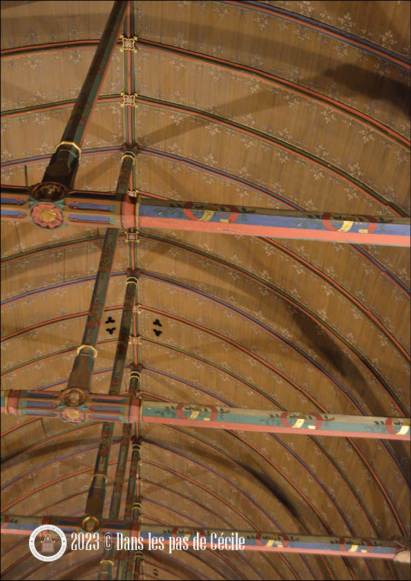 Ce qui m’a marqué en entrant, c’est le plafond en forme de coque de bateau renversé culminant à 16m de haut. Pour ceux qui me connaissent, le plafond est toujours l’objet d’un émerveillement chez moi 😊