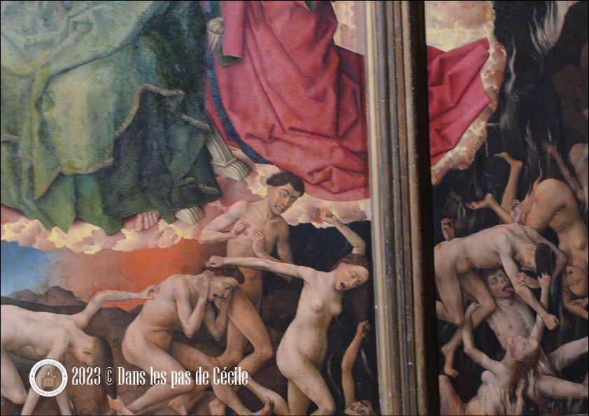 Nicolas Rolin est aussi un grand mécène (peut-être qu’en lisant son nom vous avez pensé au tableau présenté au Louvre dans l’aile des écoles flamandes La Vierge au chancelier Rolin 😉) le domaine va accueillir un certain nombre d’œuvres d’art, l’un des incontournables étant le polyptyque du Jugement Dernier par Rogier Van der Weyden, mesurant pas moins de 5,50 mètres !