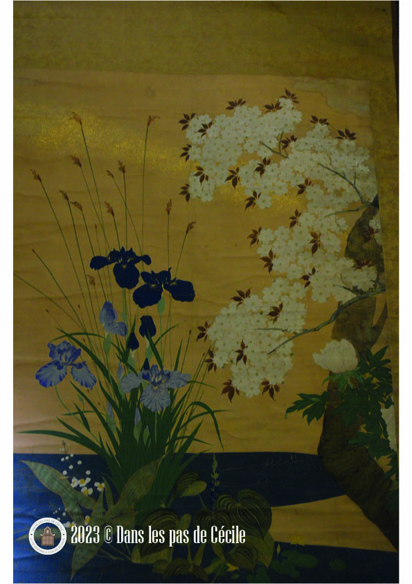 L’iris et la branche de cerisier en fleurs sont deux motifs récurrents dans la peinture japonaise qui évoquent à la fois le printemps et l’art des jardins.