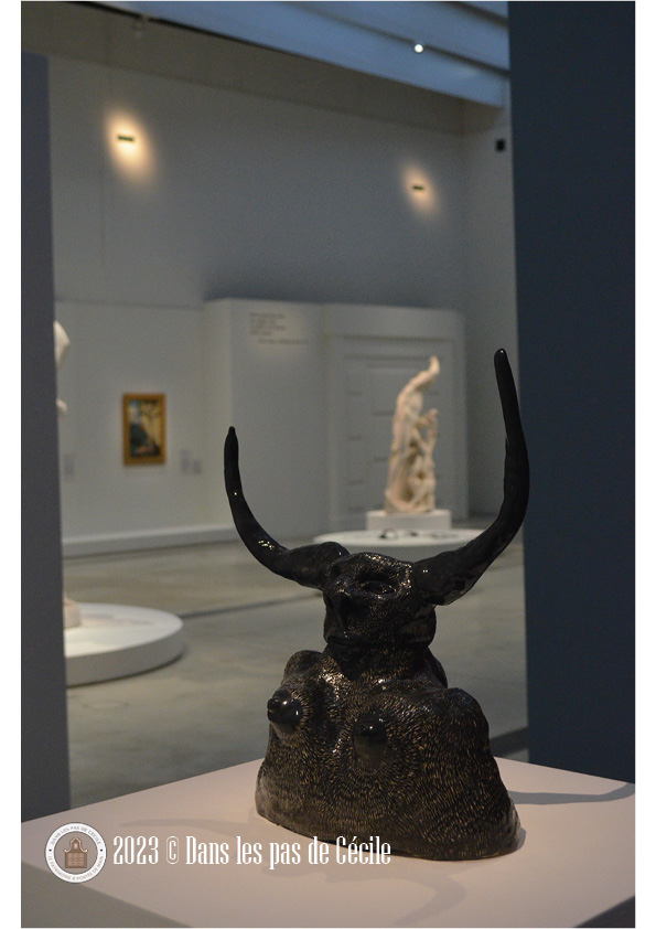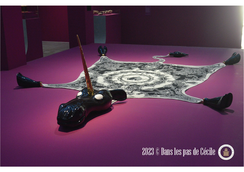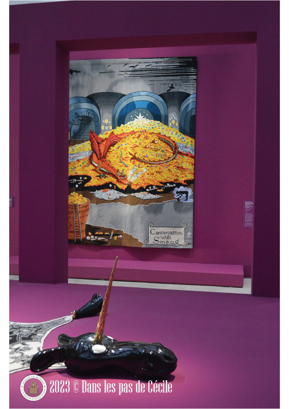 Une notion que l’exposition met aussi en avant concernant les animaux fantastique : leur ambiguïté. Parce qu’ils partagent à la fois des caractéristiques animales et parfois humaines, ils ne sont pas faciles à apprivoiser et peuvent être à le fois séduisants et dangereux. La représentation subversive de la créature peut mélanger l’humour et le questionnement politique. Encore une fois, avec leur hybridité, les licornes, les dragons et autres minotaures peuvent être l’expression d’une autre voie pour la société, une autre alternative.