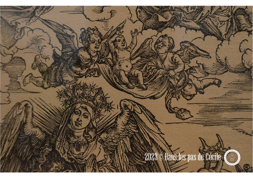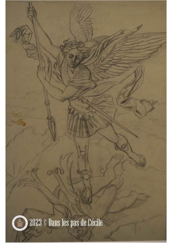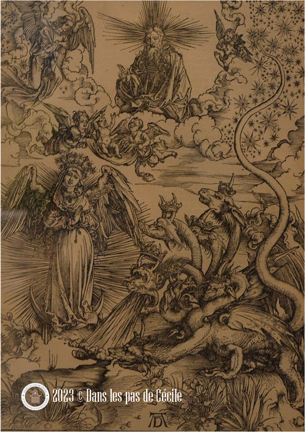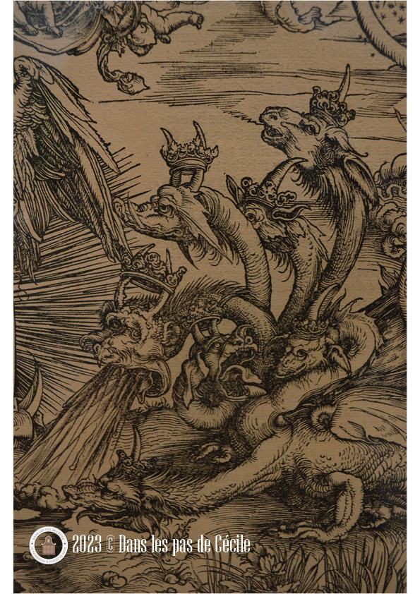 Un de mes coups sont cette gravure d’Albrecht Dürer, L’Apocalypse : la Femme vêtue de soleil et le dragon à sept têtes ainsi que ce dessin de Gustave Moreau représentant Saint Michel terrassant le dragon selon une copie de Raphaël