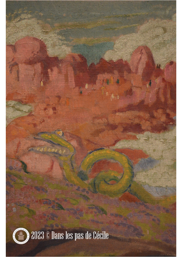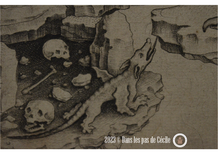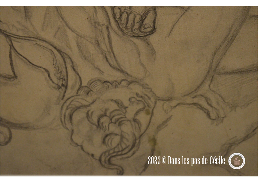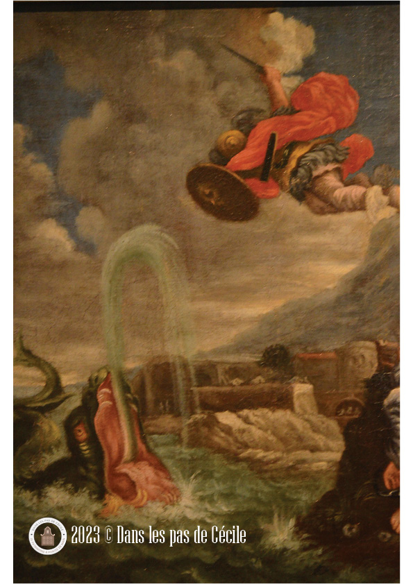 Sur ce détail du tableau, suis-je le seule à y voir une tête de dragon dans l’arrière plan rocheux rouge ?