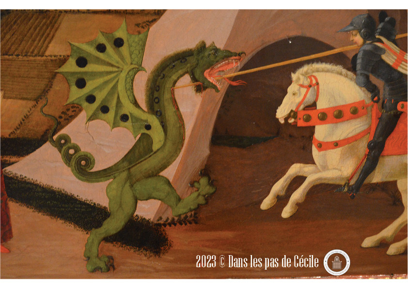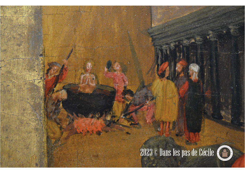 Un tableau qui m’a beaucoup plu de regarder et de partir à la recherche des détails cachés dans les méandres des plans est celui de Louis Bréa, intitulé Prédelle du retable de sainte Marguerite d’Autriche.